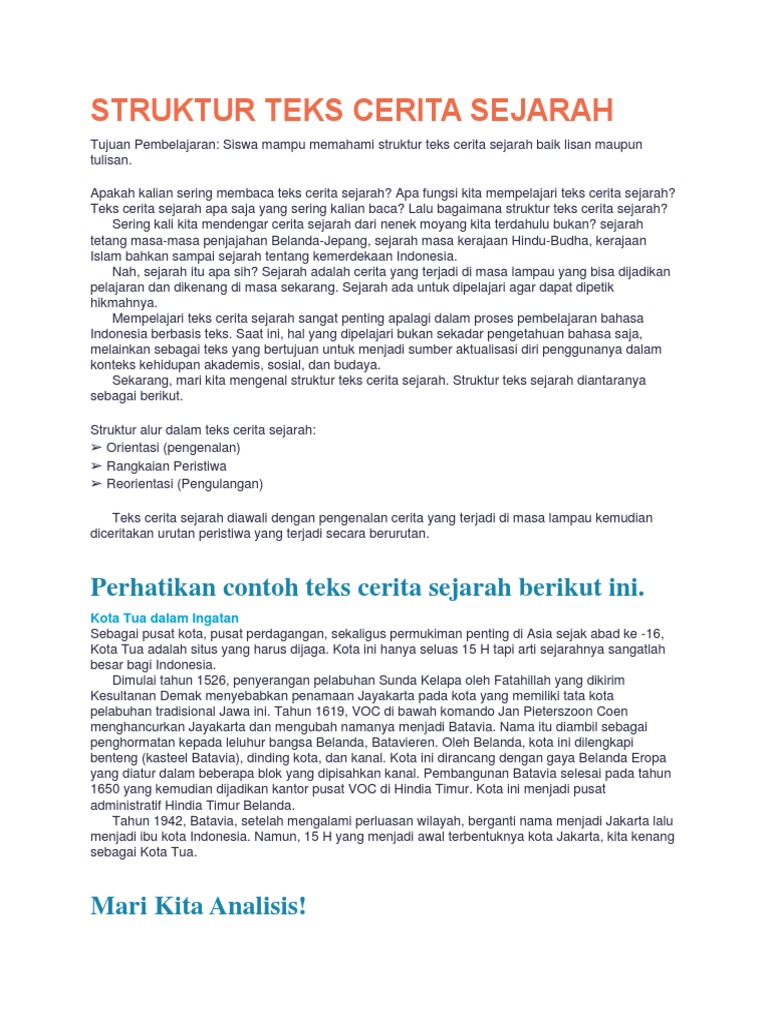 Fungsi Teks Cerita Sejarah : Pengertian, Ciri, Struktur, Kaidah Kebahasaan, Jenis Dan Contohnya | Teks.Co.Id