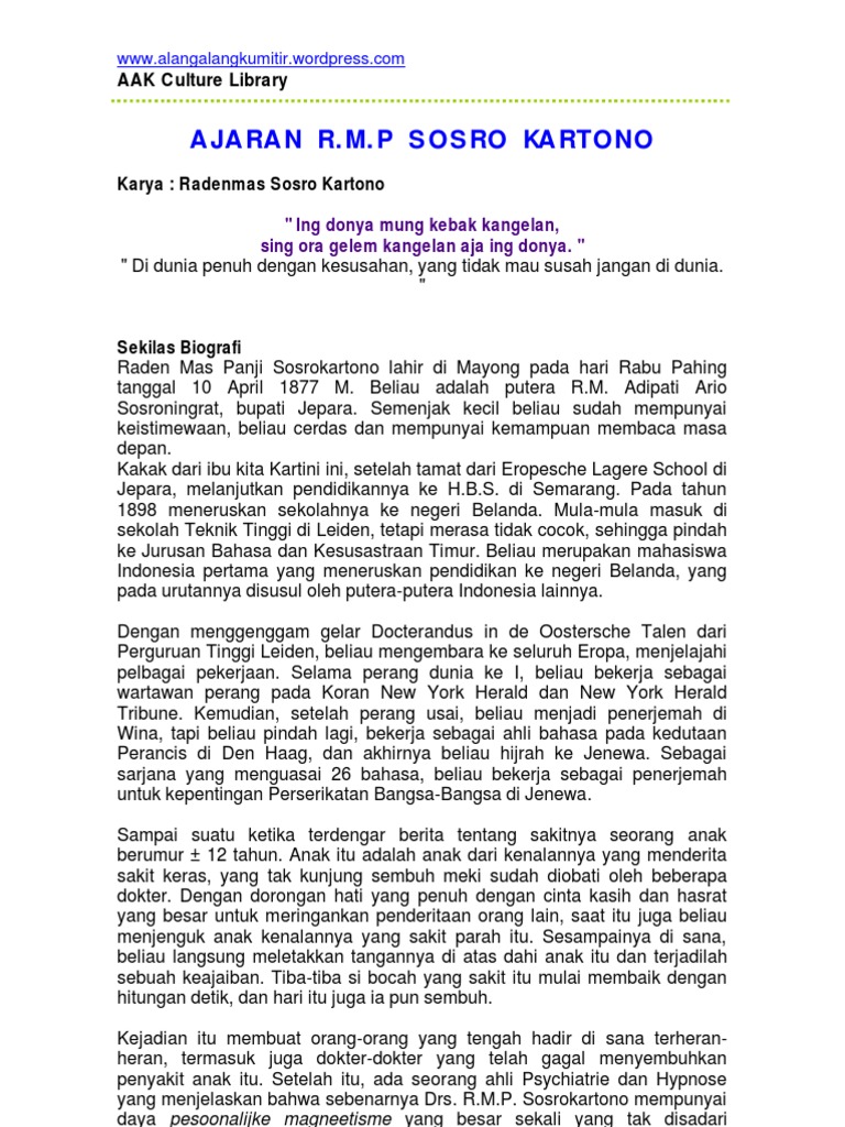 Karya Radenmas Sosro Kartono | KASKUS ARCHIVE