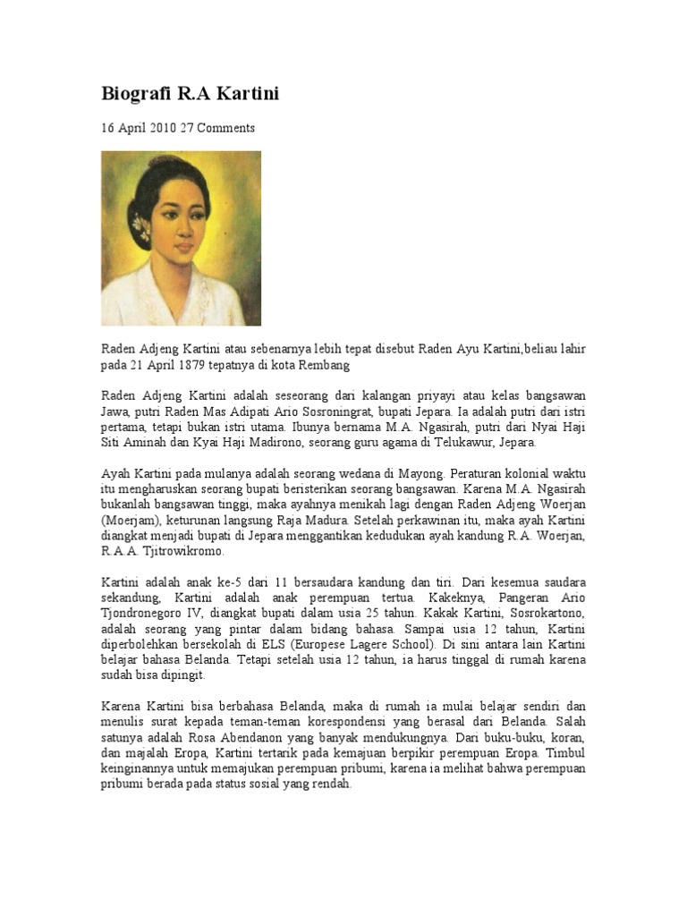 Biografi Pahlawan Emansipasi R.A. KARTINI - Kuliah Islam