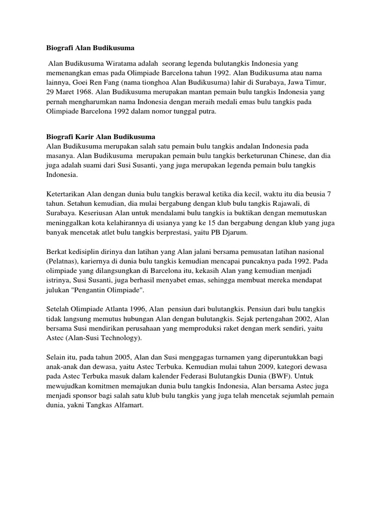 Susi Susanti Alan Budikusuma Atlet Bulu Tangkis ~ Biografi