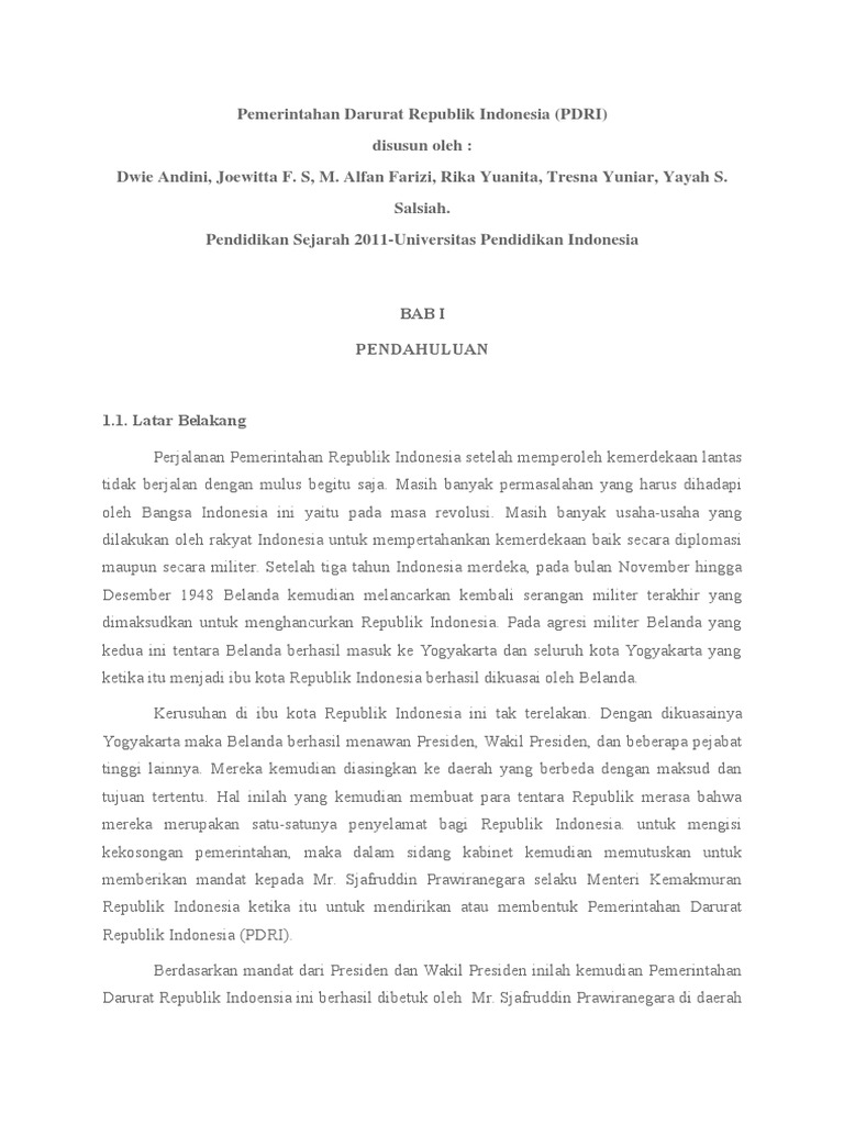 Syafruddin Prawiranegara : Presiden PDRI - Wawasan Sejarah