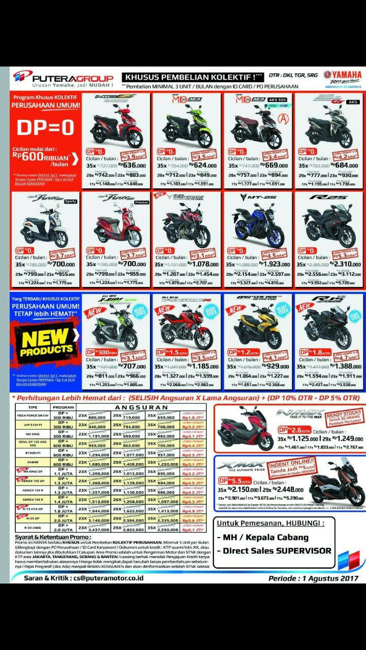 DEALER KREDIT MOTOR BARU YAMAHA - HONDA, Khusus Jakarta, Bogor, Depok, Tangerang, Bekasi: Brosur Harga / Cicilan Kredit Motor Yamaha AEROX 155 S R, MT15, Mio M3 AKS SSS CW , R25,