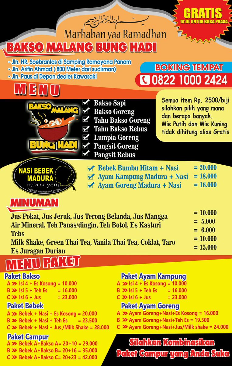 BaksoMalang BungHadi sur Twitter : “Brosur Menu Ramadhan Buka Bersama. Silakan di download & Sebarkan. Booking 082210002424 #PaketRamadhan http://t.co/h7OOYmjcKQ”