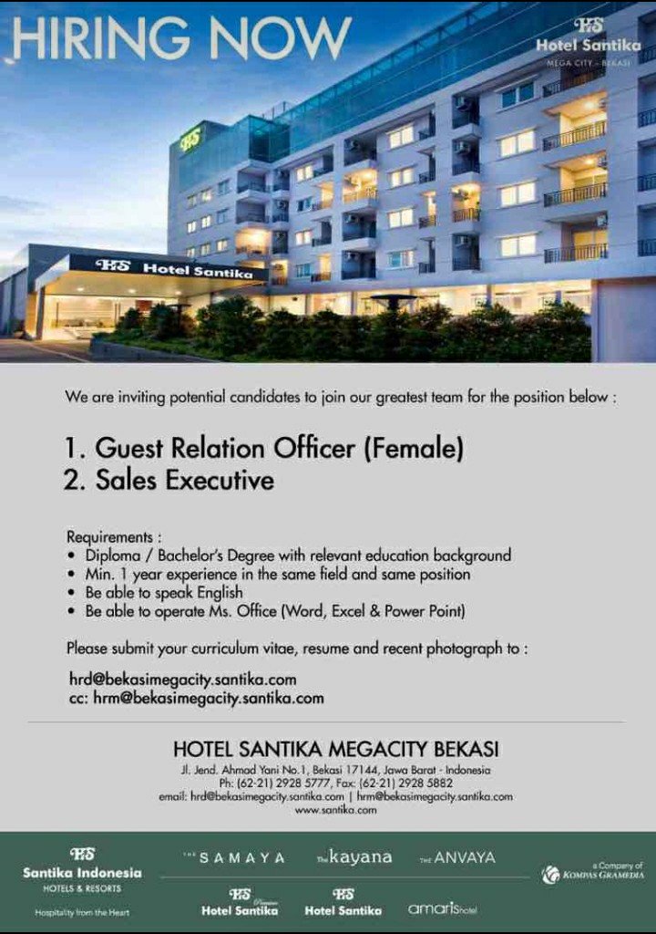 Loker Hotelier - LOWONGAN HOTEL SANTIKA BANDUNG AUGUST… | Facebook
