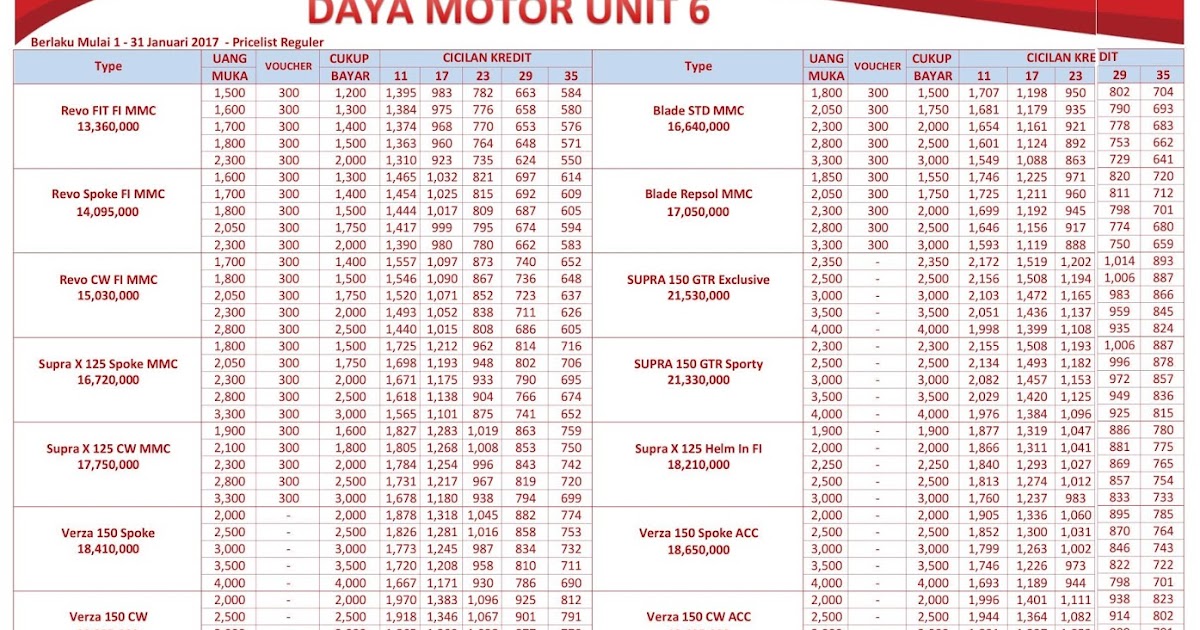 Brosur Kredit Motor Honda Januari 2017 | Dealer Sepeda Motor Honda Sungai Bahar Jambi