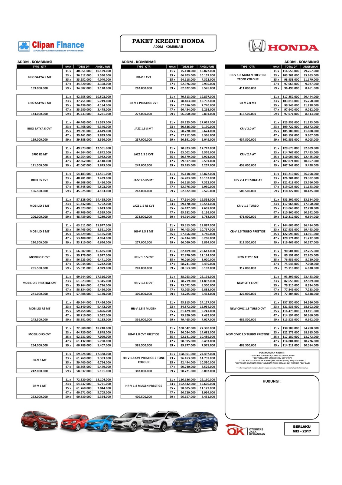 Brosur Kredit Motor Honda Maret 2017 | Dealer Sepeda Motor Honda Sungai Bahar Jambi