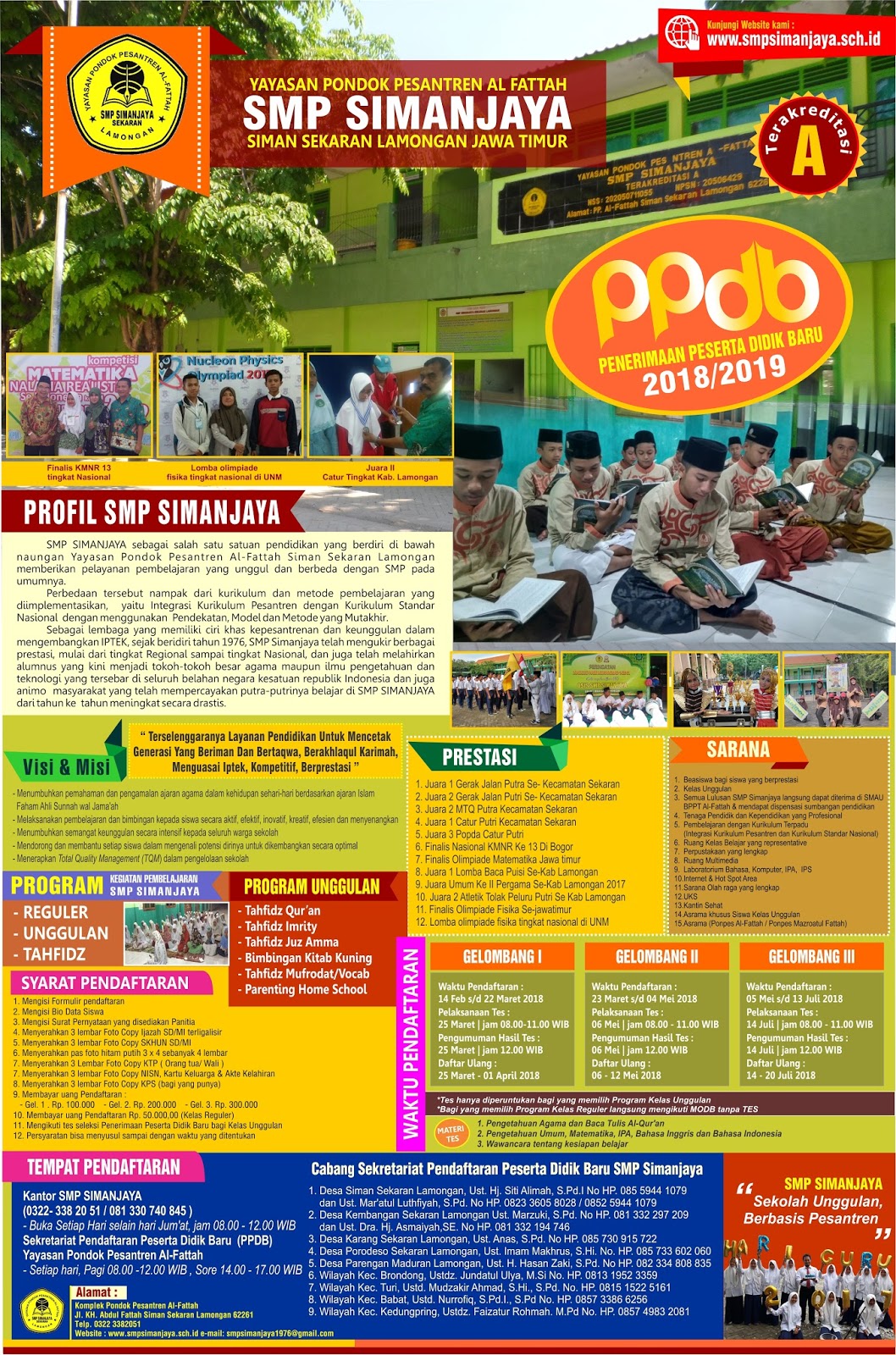 BROSUR PPDB 2018/2019 - SMP SIMANJAYA - Siman Sekaran Lamongan
