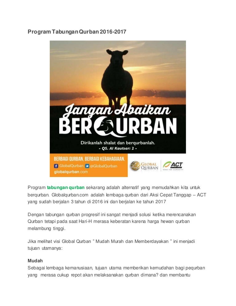 PROGRAM IBADAH QURBAN & AQIQAH MITASA/ARP BAGI TAHUN 1438H/2017