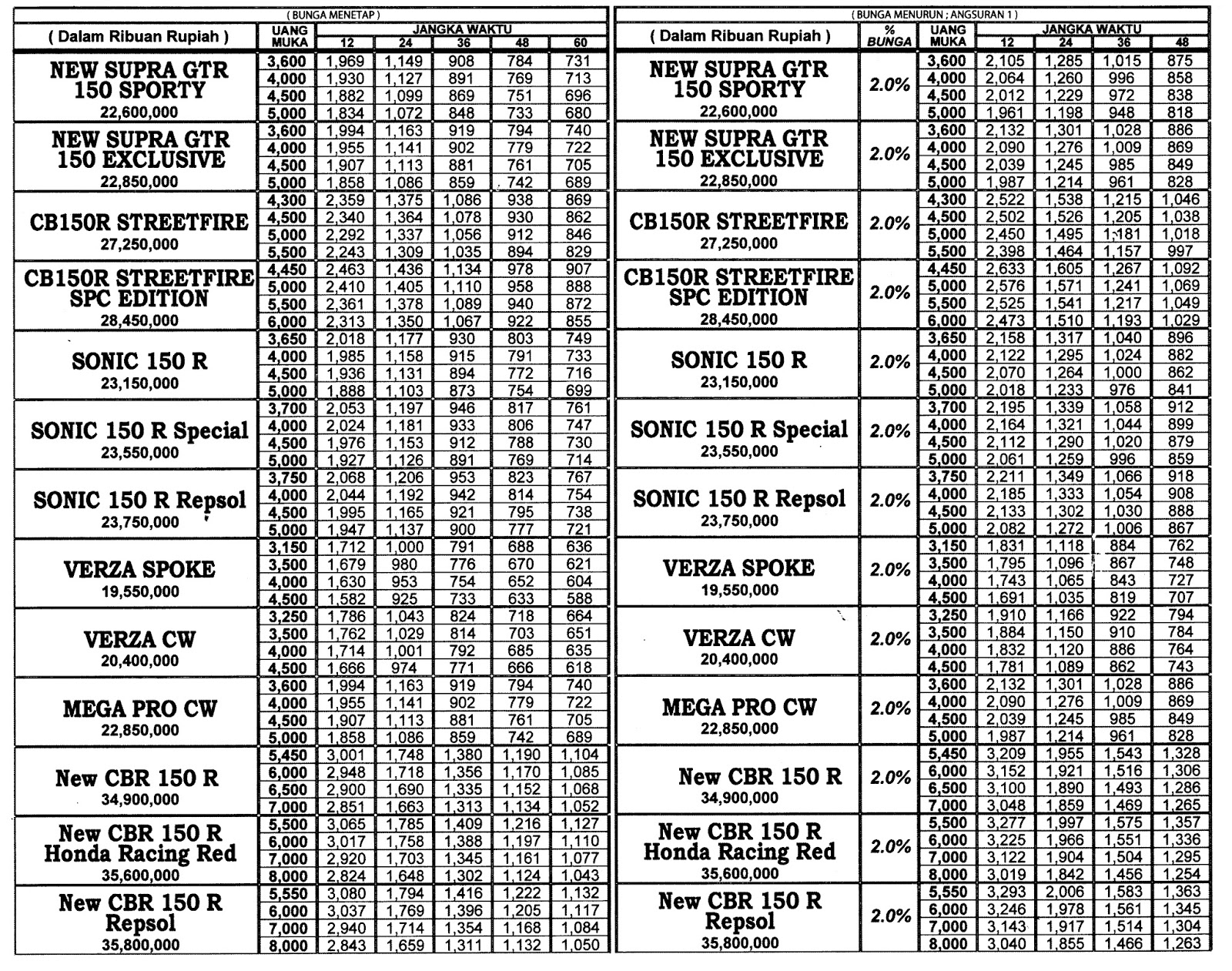 DEALER KREDIT MOTOR BARU YAMAHA - HONDA, Khusus Jakarta, Bogor, Depok, Tangerang, Bekasi: Brosur, Daftar - Promo - Harga Uang Muka / DP & Angsuran, cicilan Kredit motor HONDA 2020 all New