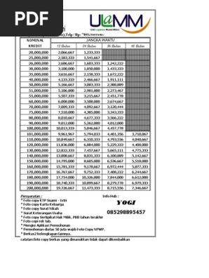 Tabel Angsuran Pinjaman ULAMM 2020 - Panduan Bank