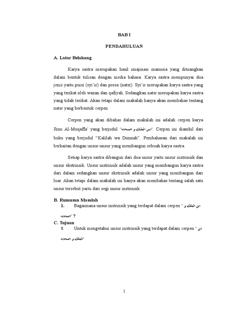 PDF) Unsur-Unsur Intrinsik Cerpen “Zaujatun min Sya>t}i’i al-A>khar” dalam antologi “Sayyidatun Fi> Khidmatika” karya Isn ‘Abdu al-Qudds | Chusnul Khotimah - Academia.edu