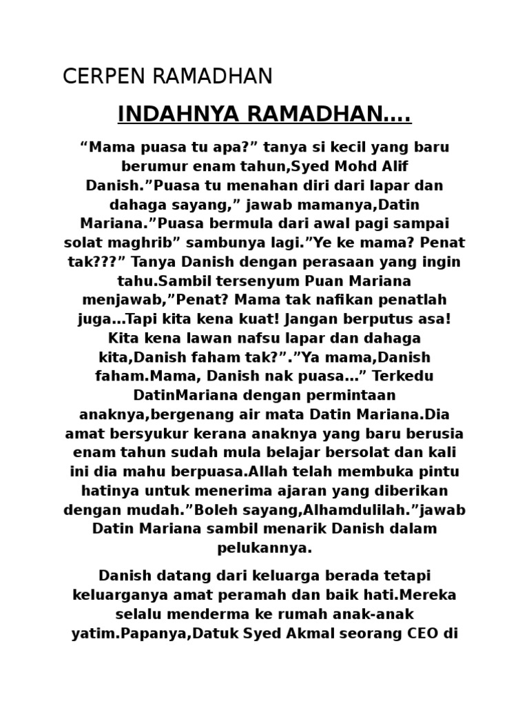 Buatlah sebuah cerpen tentang bulan ramadhan - Brainly.co.id
