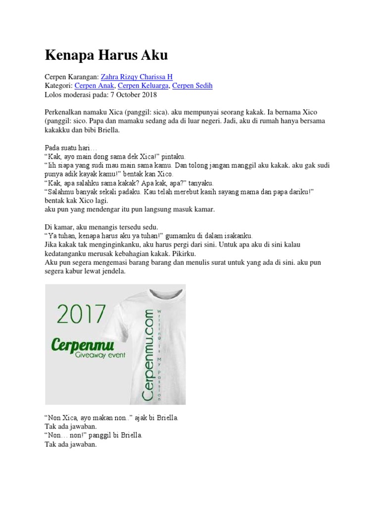 Kenapa Harus Aku: Zahra Rizqy Charissa H Cerpen Anak Cerpen …