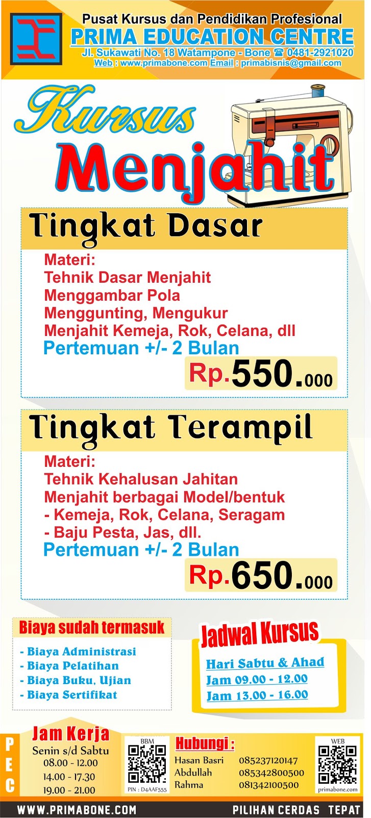 BROSUR KURSUS MENJAHIT EDISI 2020 - LKP Prima Bina Insani Profesional