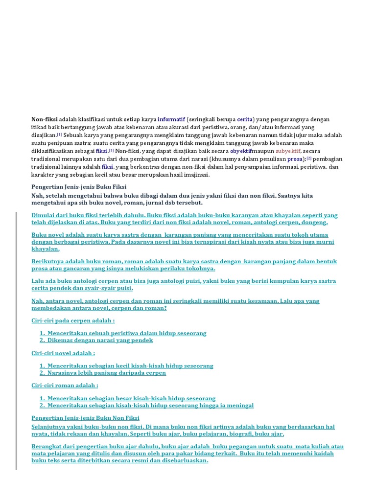 Cerita Non Fiksi, Pengertian, Pembagian, Jenis - Jenis Non Fiksi …
