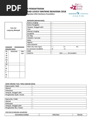 Formulir Bintang Beasiswa Fair and Lovely 2018