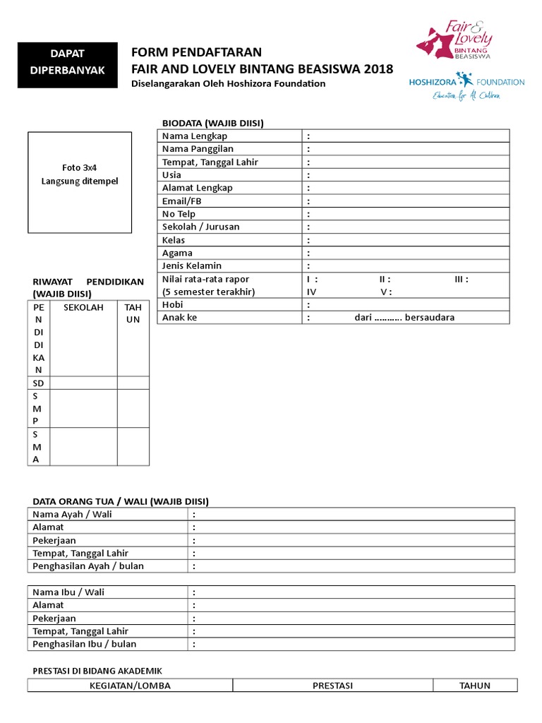 FORM PENDAFTARAN Fair and Lovely Bintang Beasiswa DISELANGARAKAN …