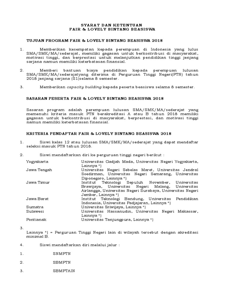 Beasiswa Kuliah S1 Fair and Lovely Bintang Beasiswa 2018 – Seputar …