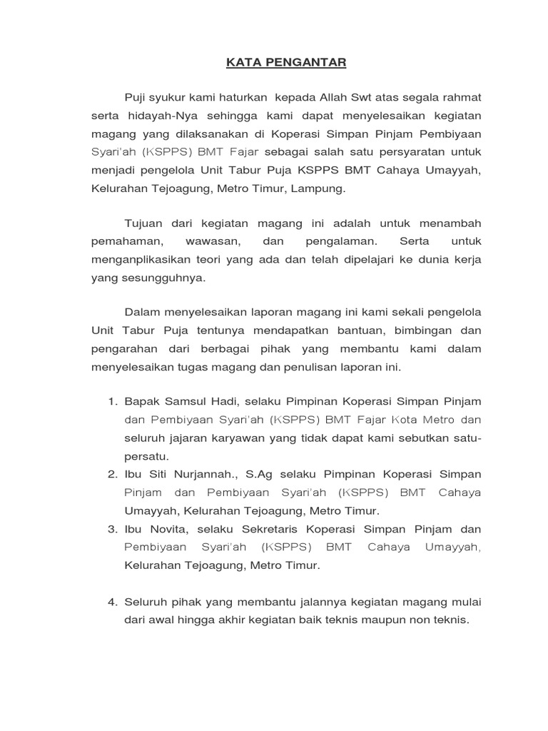 Contoh Kata Pengantar Untuk Laporan Magang - Kumpulan Contoh Laporan
