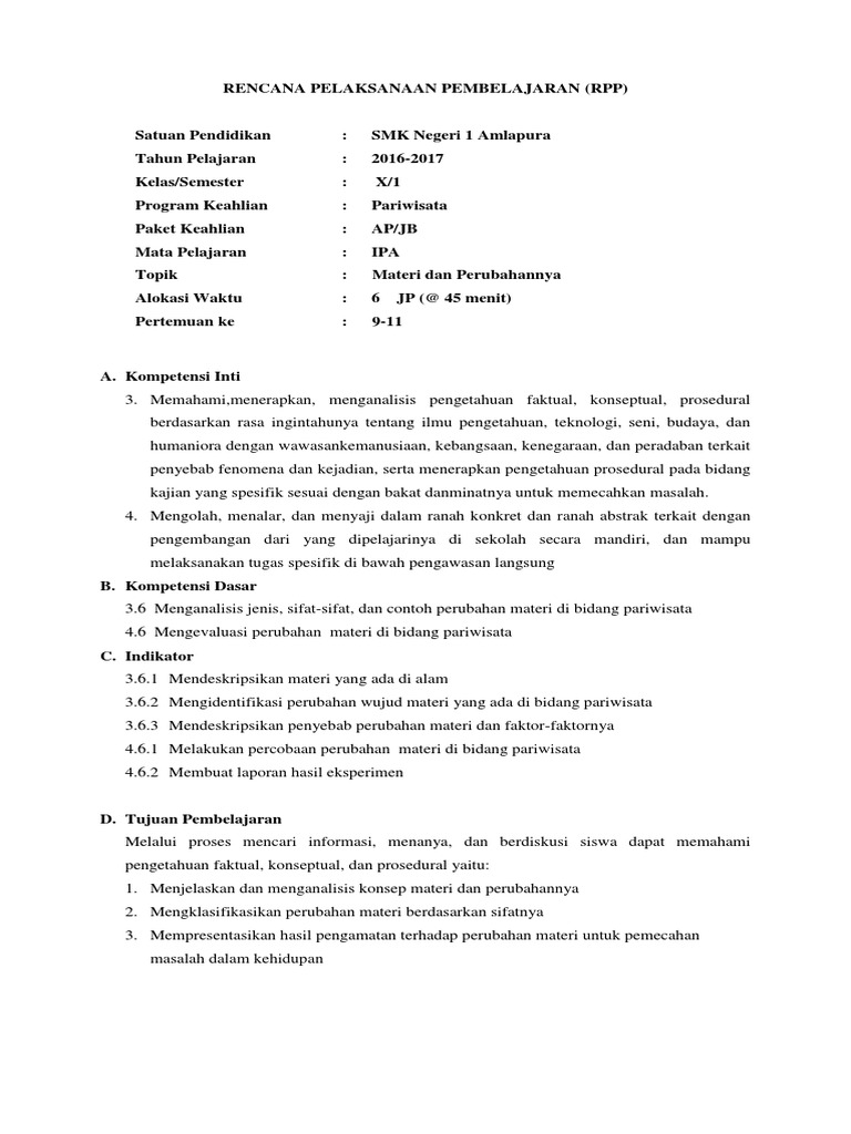 rpp perubahan materi