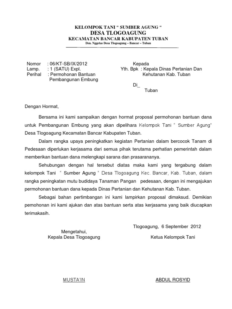 Contoh Proposal Permohonan Bantuan Alat Pertanian - Berbagi Contoh Proposal