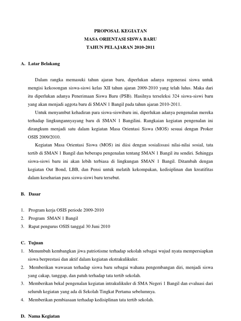 DOC) PROPOSAL KEGIATAN MASA ORIENTASI SISWA BARU SMA NEGERI 2 CILACAP | Alwanul Mubin - Academia.edu