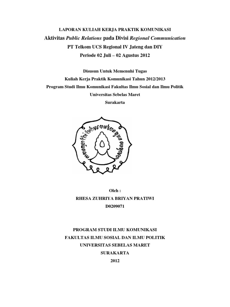 PDF) LAPORAN KULIAH KERJA PRAKTEK TERPADU (MAGANG) PADA BIDANG KEHUMASAN/ PUBLIC RELATIONS PT. TELKOM UCS REGIONAL IV JATENG & DIY | ina dini - Academia.edu