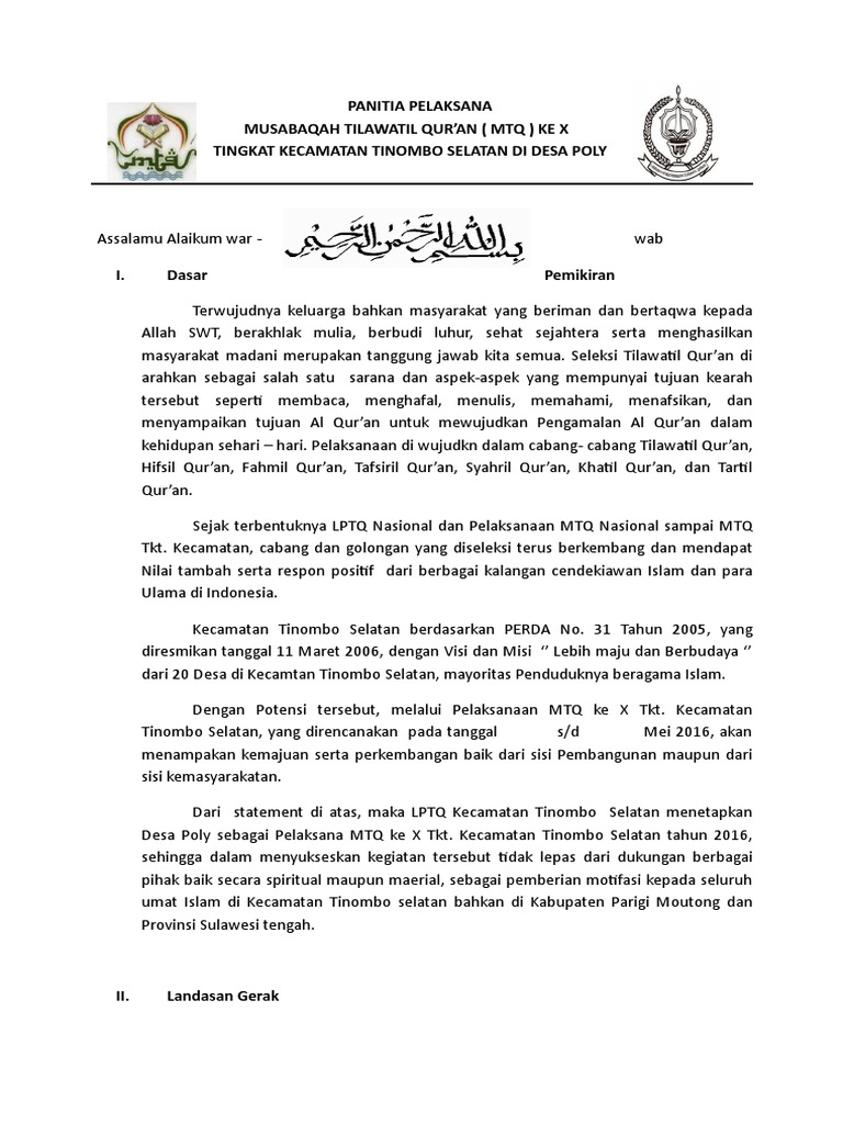 Contoh Proposal Kegiatan Mtq Tingkat Kecamatan - Berbagi Contoh Proposal