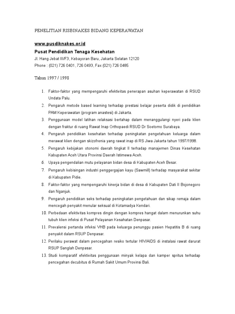 Contoh Proposal Penelitian Keperawatan Medikal Bedah Pdf - Berbagi Contoh Proposal