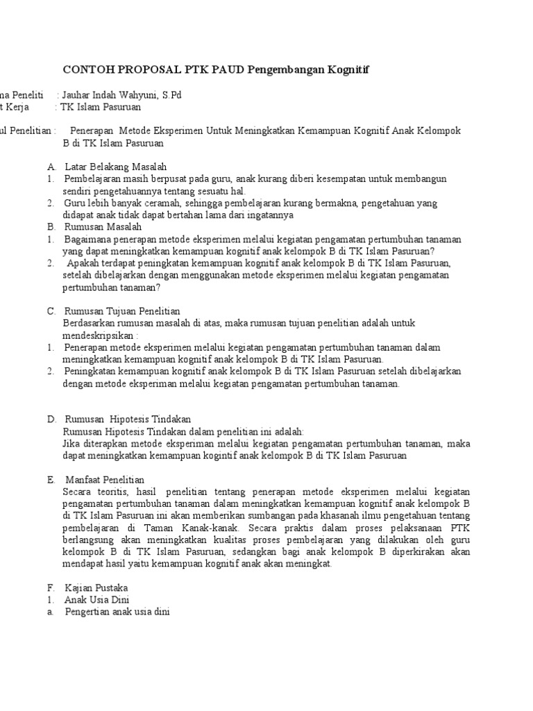 Contoh Proposal Ptk Paud Terbaru - Guru Ilmu Sosial