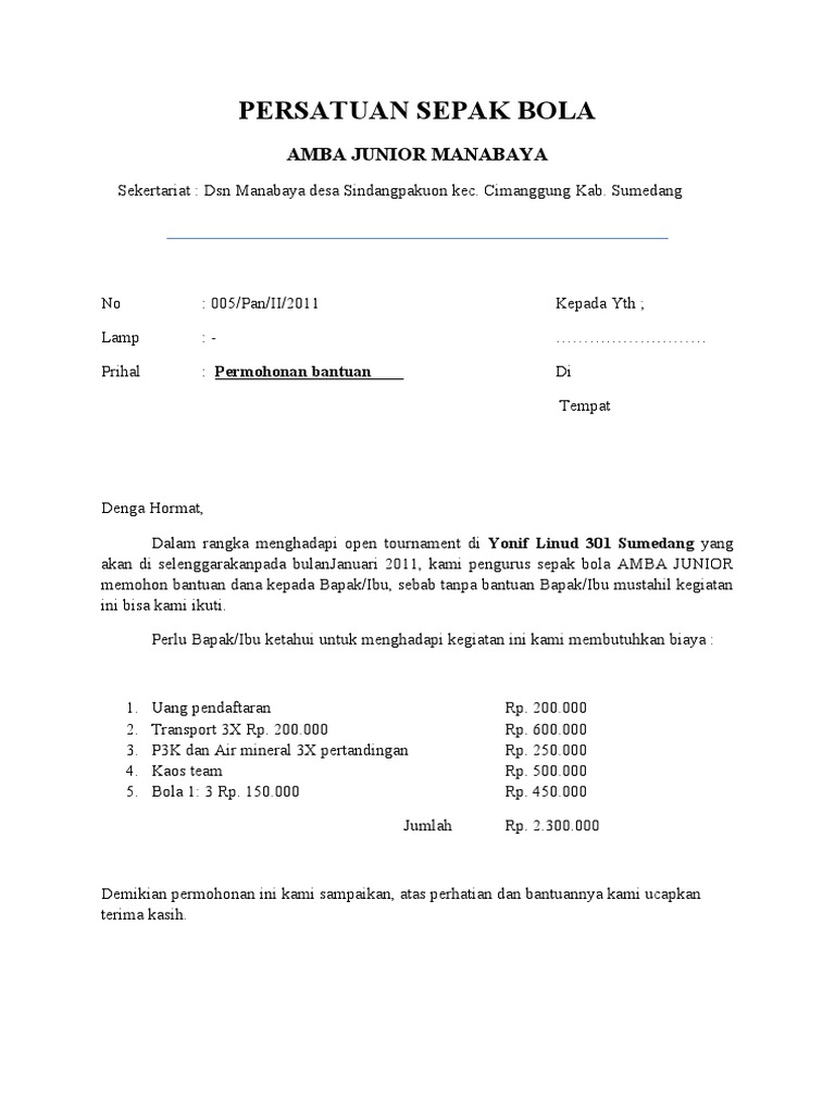 DOC) Contoh proposal permohonan dana lapangan sepak bola | Patrol Mutaqin - Academia.edu