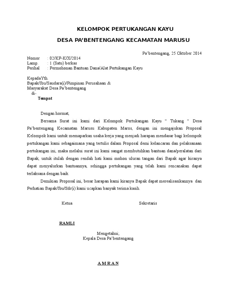 Contoh Proposal Permohonan Bantuan Alat Pertukangan Mebel - Temukan Contoh