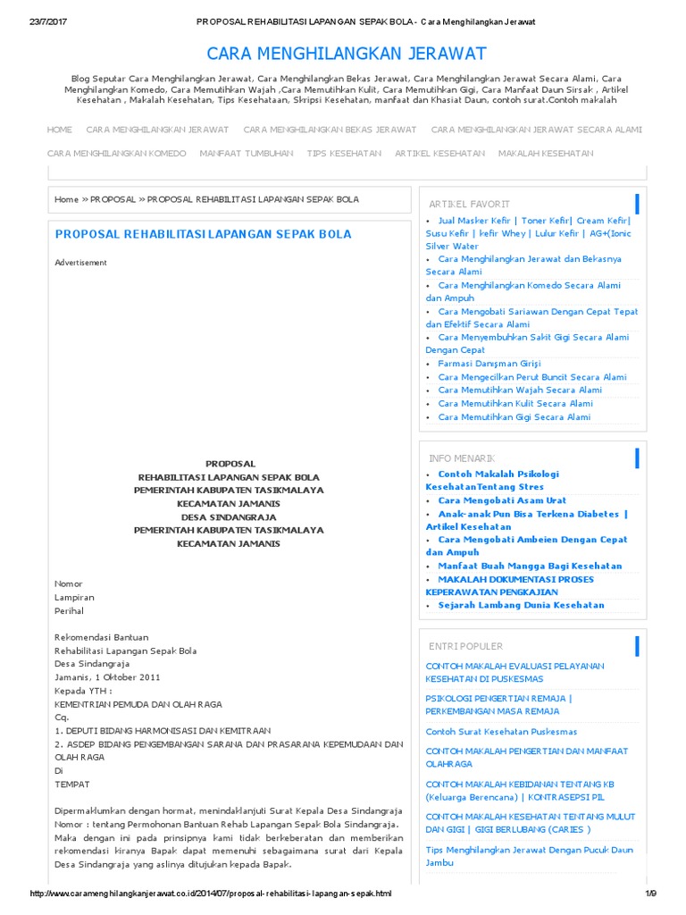 Proposal Rehabilitasi Lapangan Sepak Bola - Cara Menghilangkan Jerawat