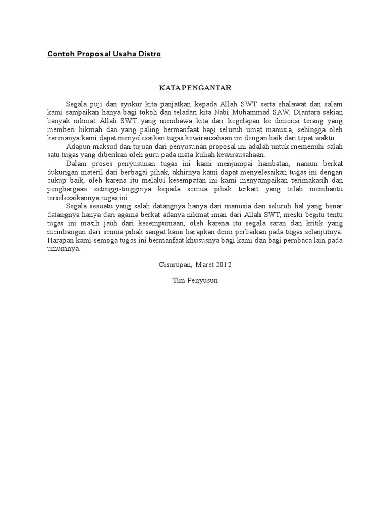 DOC) PROPOSAL USAHA DISTRO UNIVERSITAS LANGLANGBUANA BANDUNG 2015 KATA PENGANTAR | aris fajar - Academia.edu