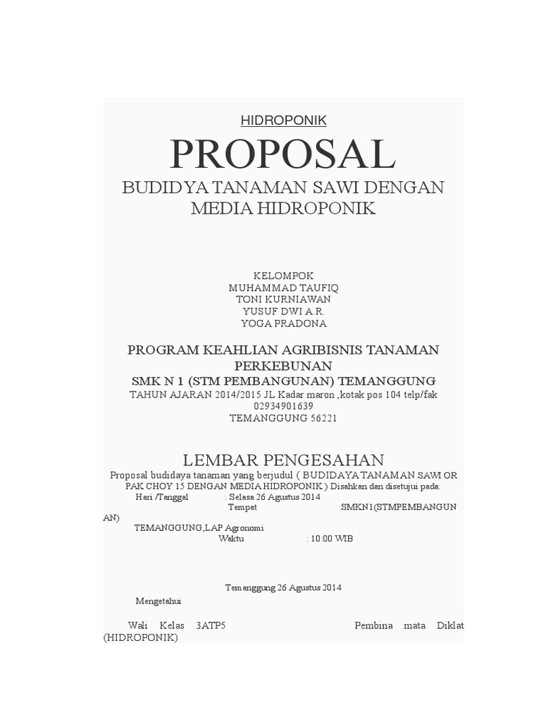 DOC) Proposal Usaha Sayuran Hidroponik | Sahril S - Academia.edu
