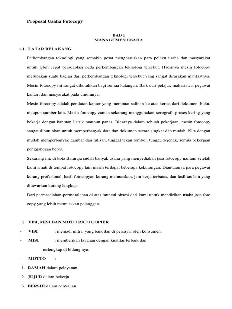 Contoh Proposal Usaha Fotocopy Dan Percetakan Doc - Berbagi Contoh …