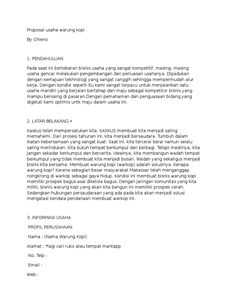 Contoh Proposal Bisnis Kedai Kopi - PDF Free Download