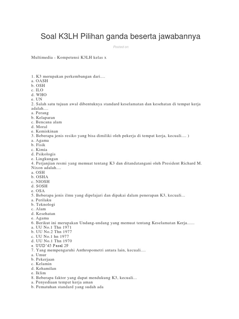 Soal Dan Jawaban K3lh Essay - Contoh Soal