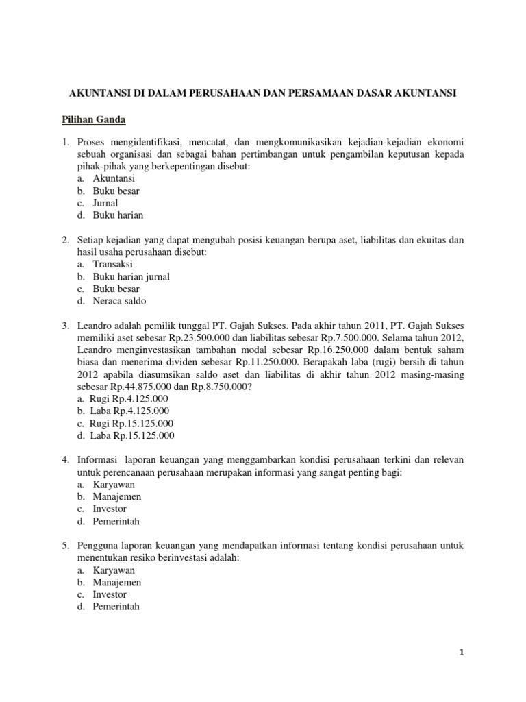 Soal Pengantar Akuntansi Pilihan Ganda - Guru Ilmu Sosial