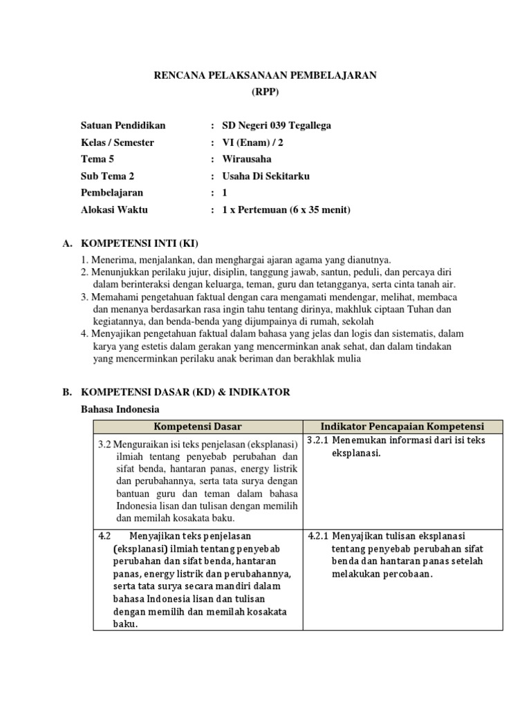 Rpp SD Kelas 6 semester 2 K13 tema 9