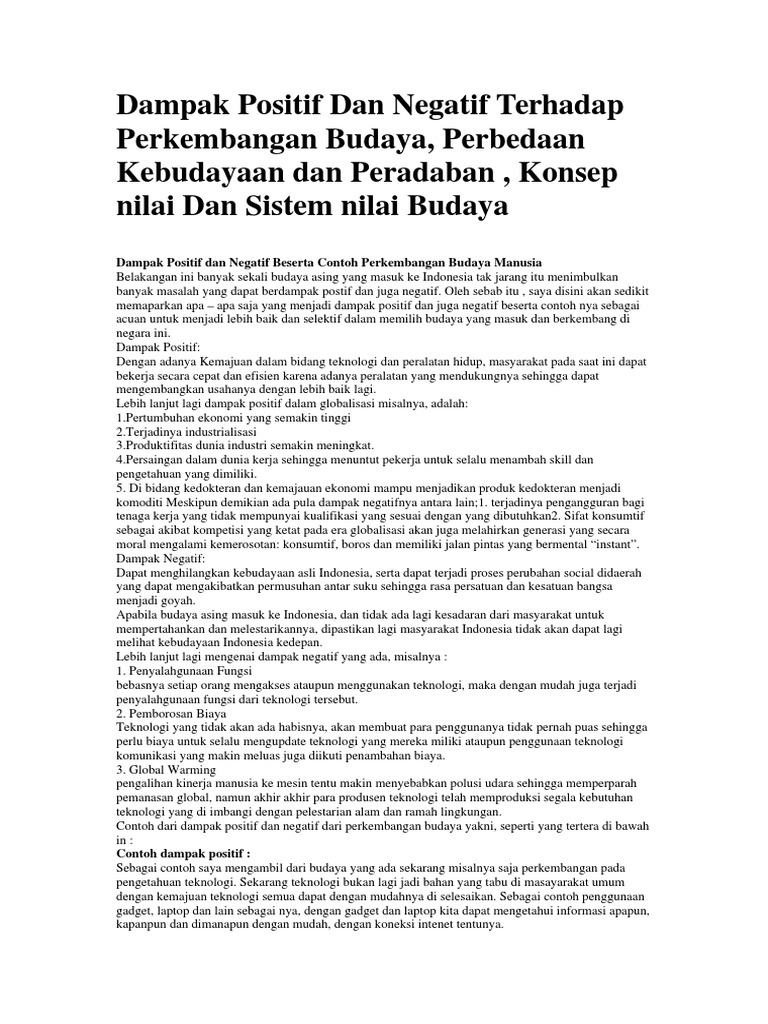 Dampak Positif Dan Negatif Terhadap Perkembangan Budaya