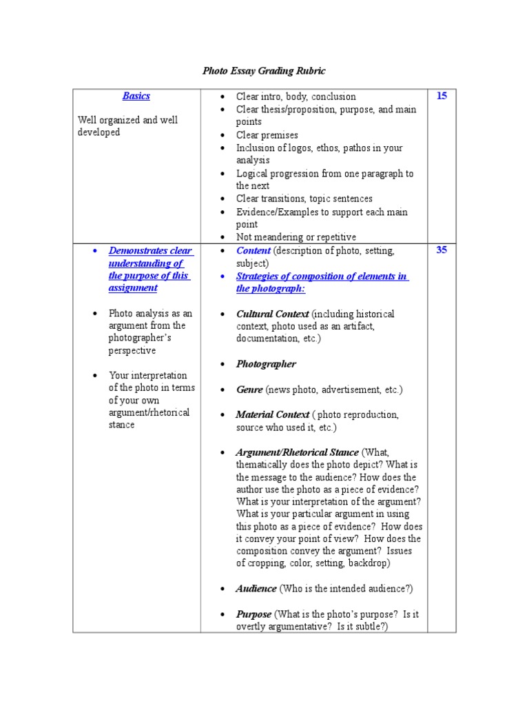 Basics: Photo Essay Grading Rubric | Verb | Argument
