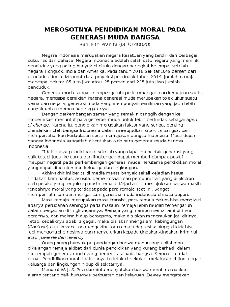PDF) Esai - REAKTUALISASI NILAI KARAKTER DI SEKOLAH DASAR_1411031079