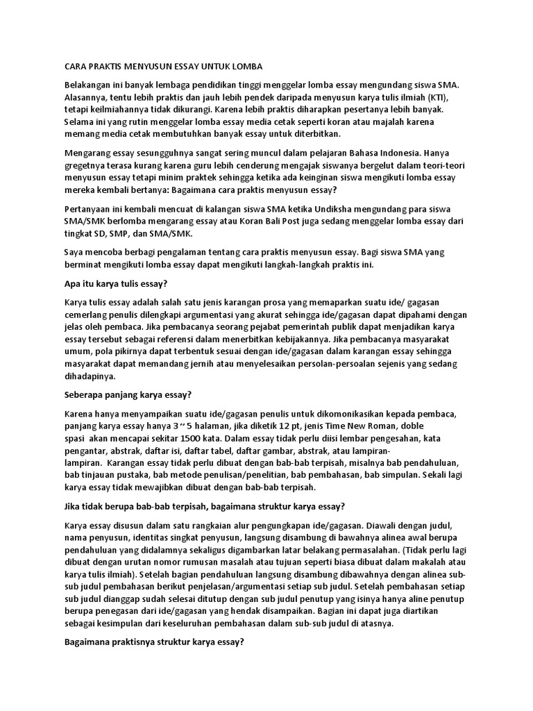 Kumpulan Contoh Essay Berbagai Topik (Pendidikan, Bahasa Inggris DLL)