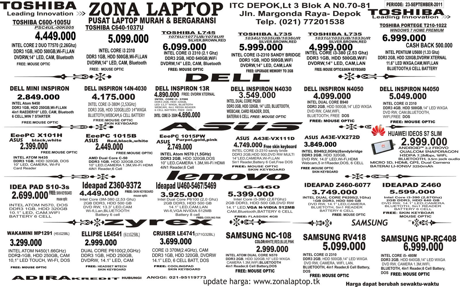 ZONA LAPTOP: BROSUR HARGA LAPTOP 23 SEPTEMBER 2011