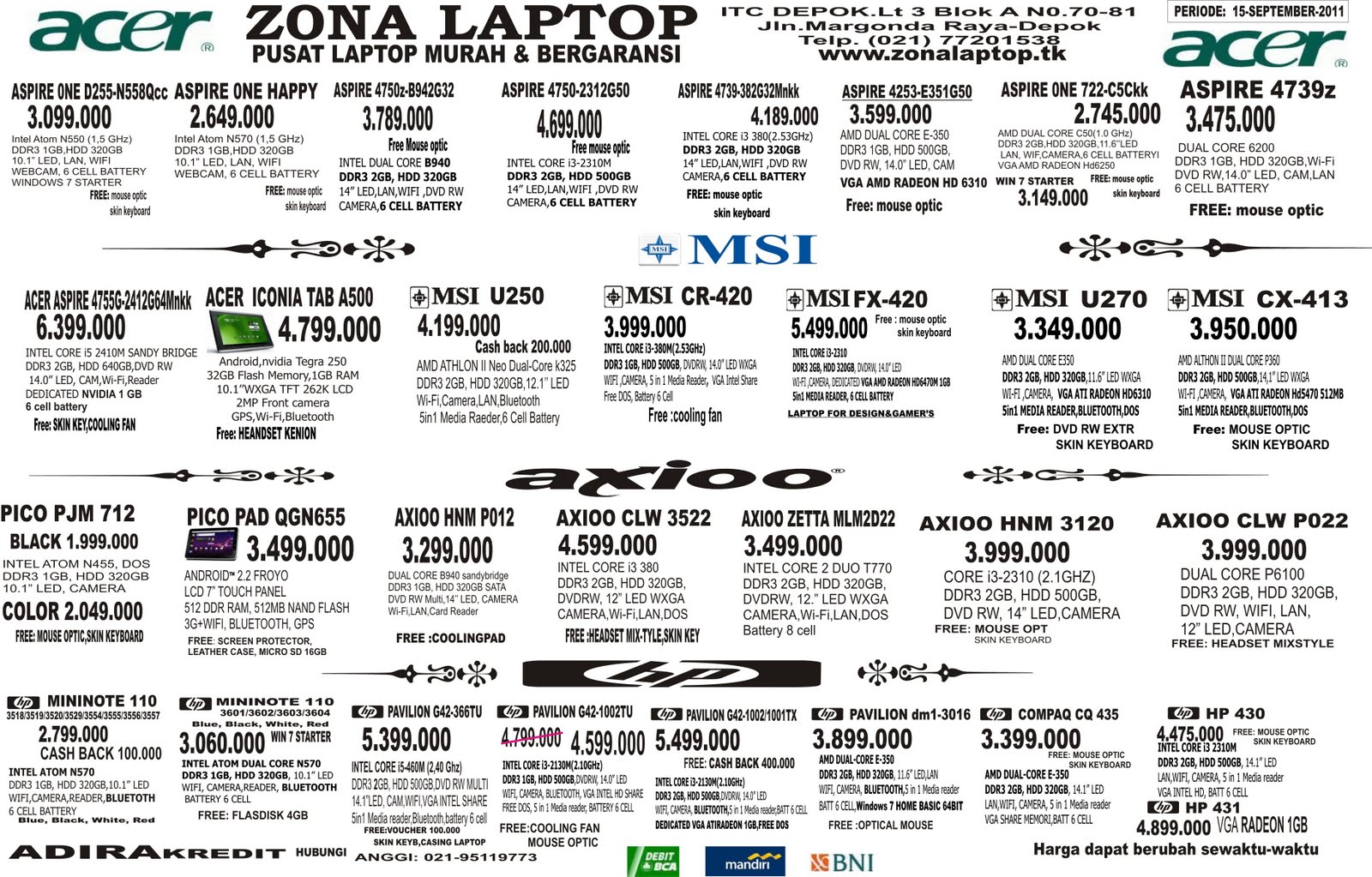 ZONA LAPTOP: BROSUR HARGA LAPTOP 15 SEPTEMBER 2011
