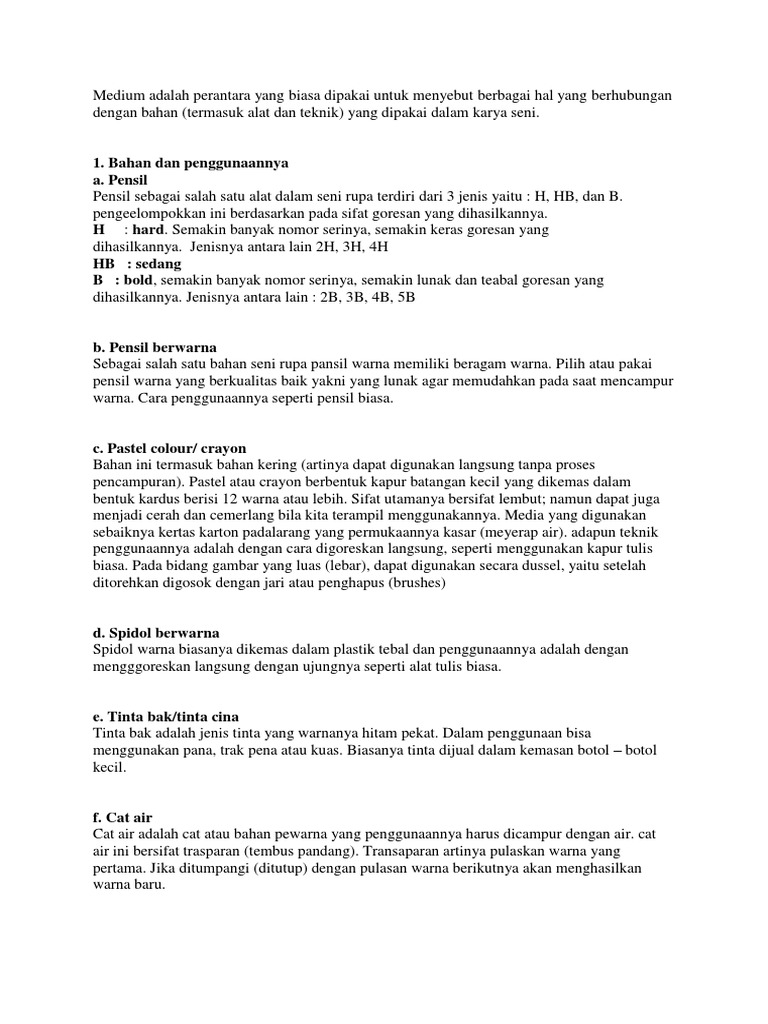 Medium, Bahan, dan Teknik Berkarya Seni Rupa 2 Dimensi - PDF Download Gratis