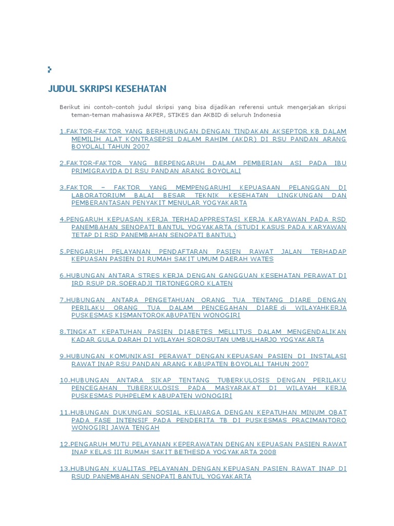 Skripsistikes’s Blog | CONTOH-CONTOH JUDUL SKRIPSI KEPERAWATAN, KESEHATAN MASYARAKAT DAN KEBIDANAN