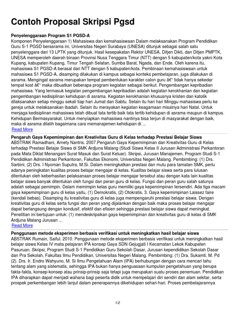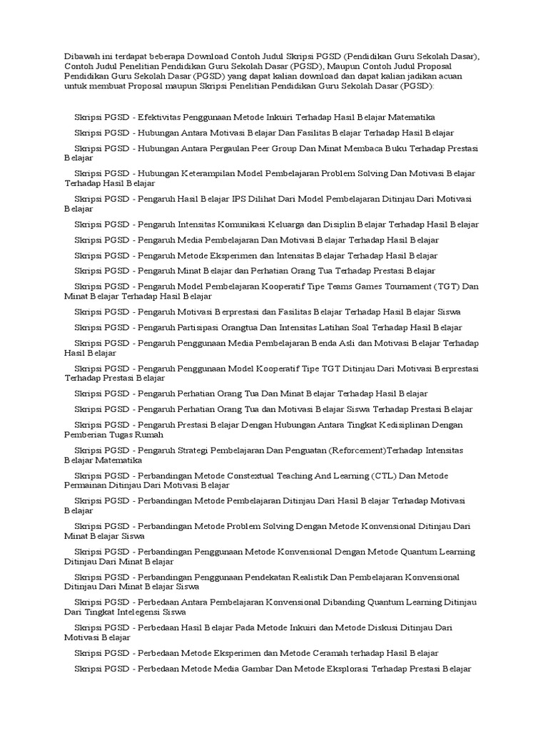 Judul Skripsi Pgsd S1 Non Ptk - Kumpulan Berbagai Skripsi