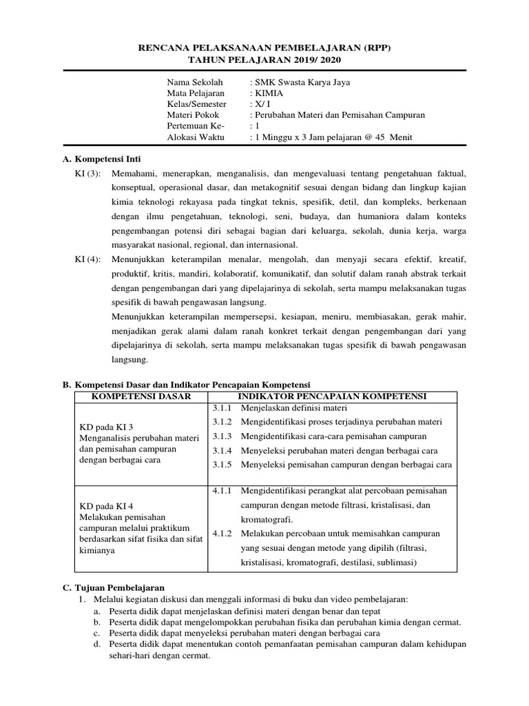 DOC) FIX. 1 RPP PERUBAHAN MATERI DAN PEMISAHAN CAMPURAN | Lia …